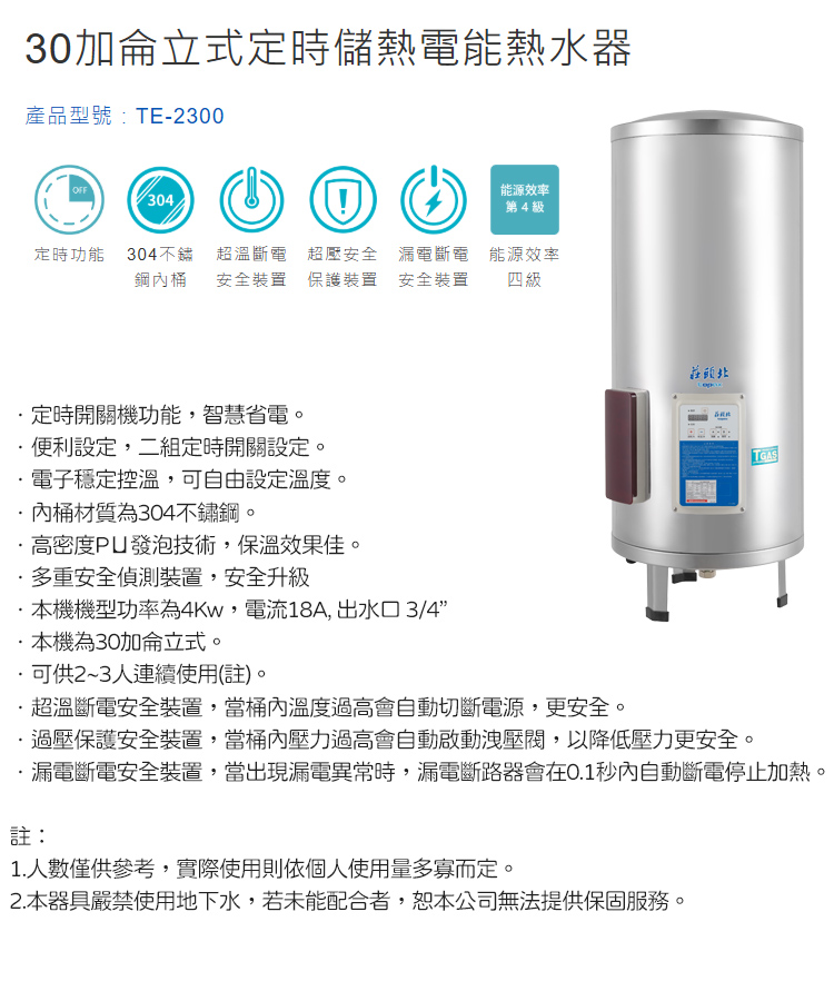 本機機型功率為4Kw,電流18A, 出水口 3/4”