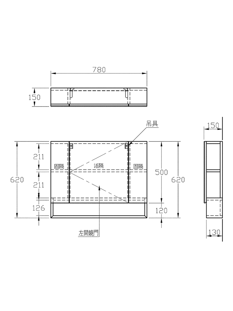 尺寸 780x150x620mm