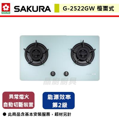 【櫻花SAKURA】G-2522G - 二口小面易清檯面爐 - (含基...