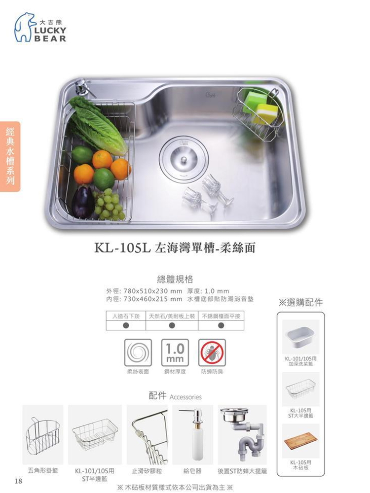 【大吉熊】左海灣單槽(柔絲面)-KL-105L-無安裝服務