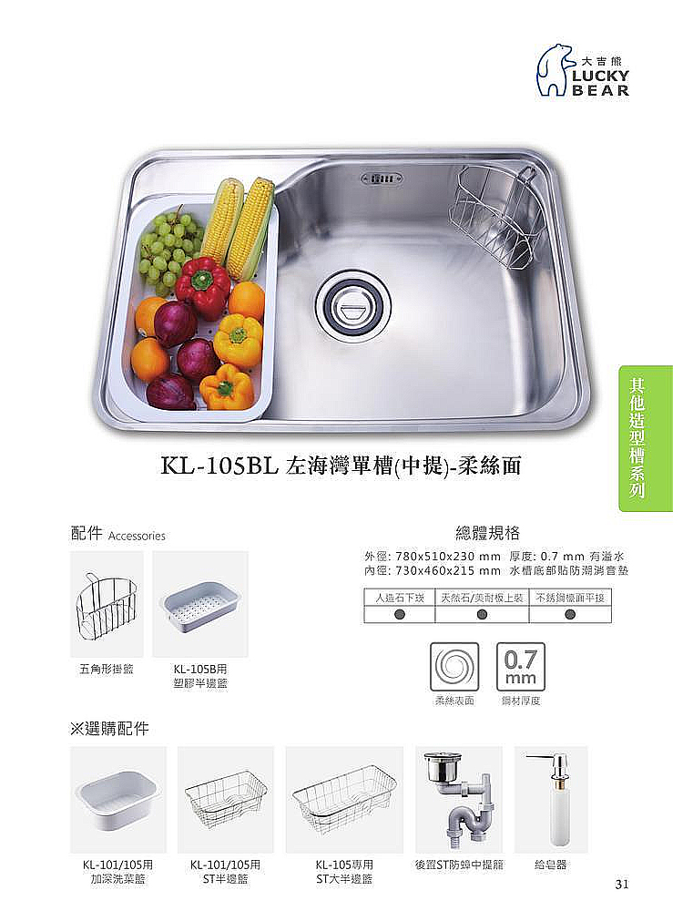 【大吉熊】左海灣單槽(柔絲面)-KL-105BL-無安裝服務