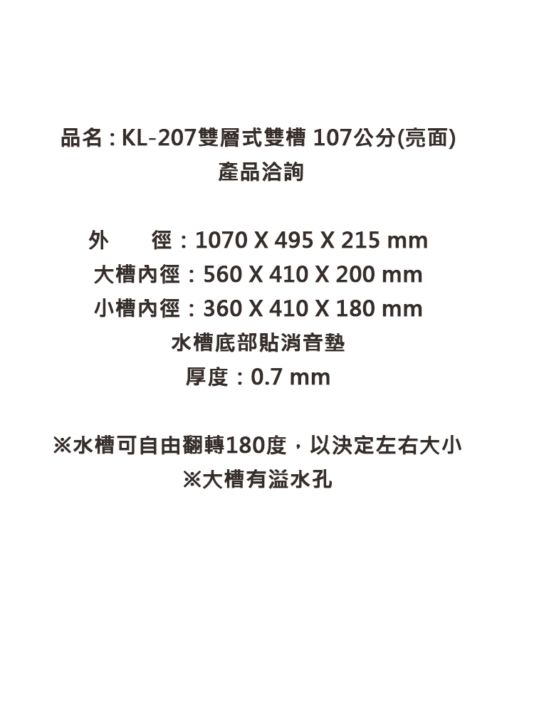 ·水槽可自由翻轉180度,以決定左右大小