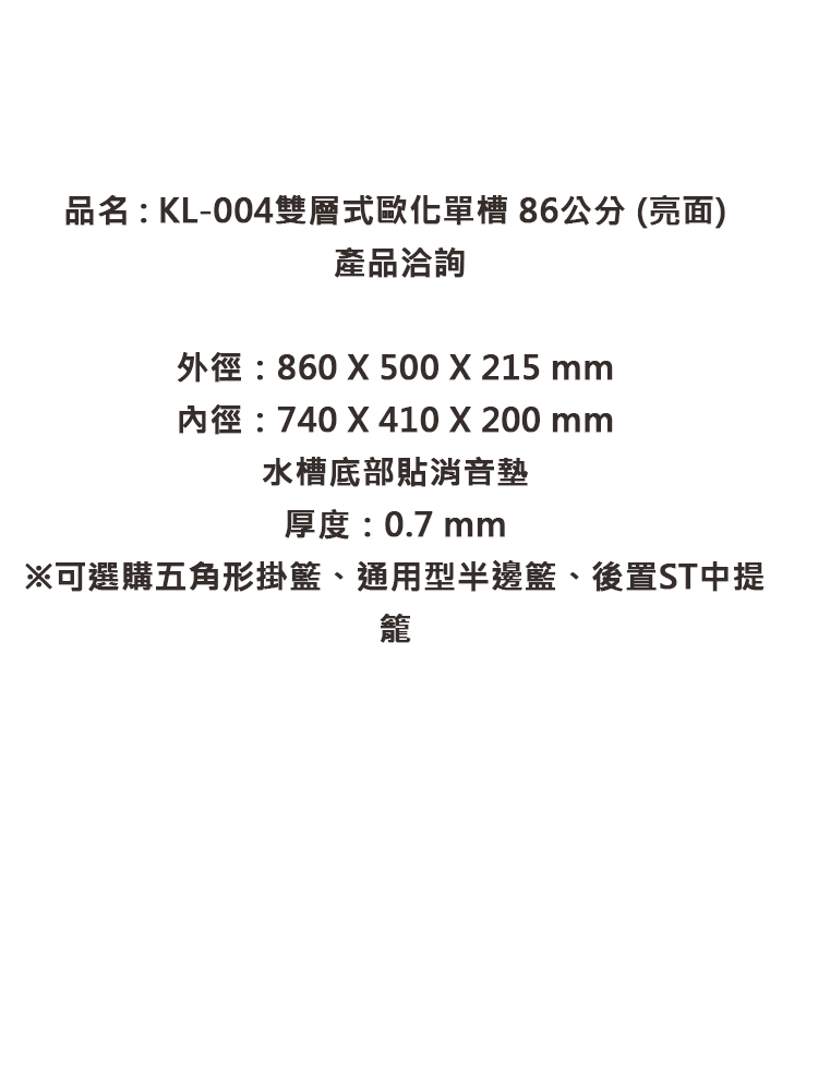 【大吉熊】86cm 雙層式歐化單槽(亮面)-KL-004-無安裝服務